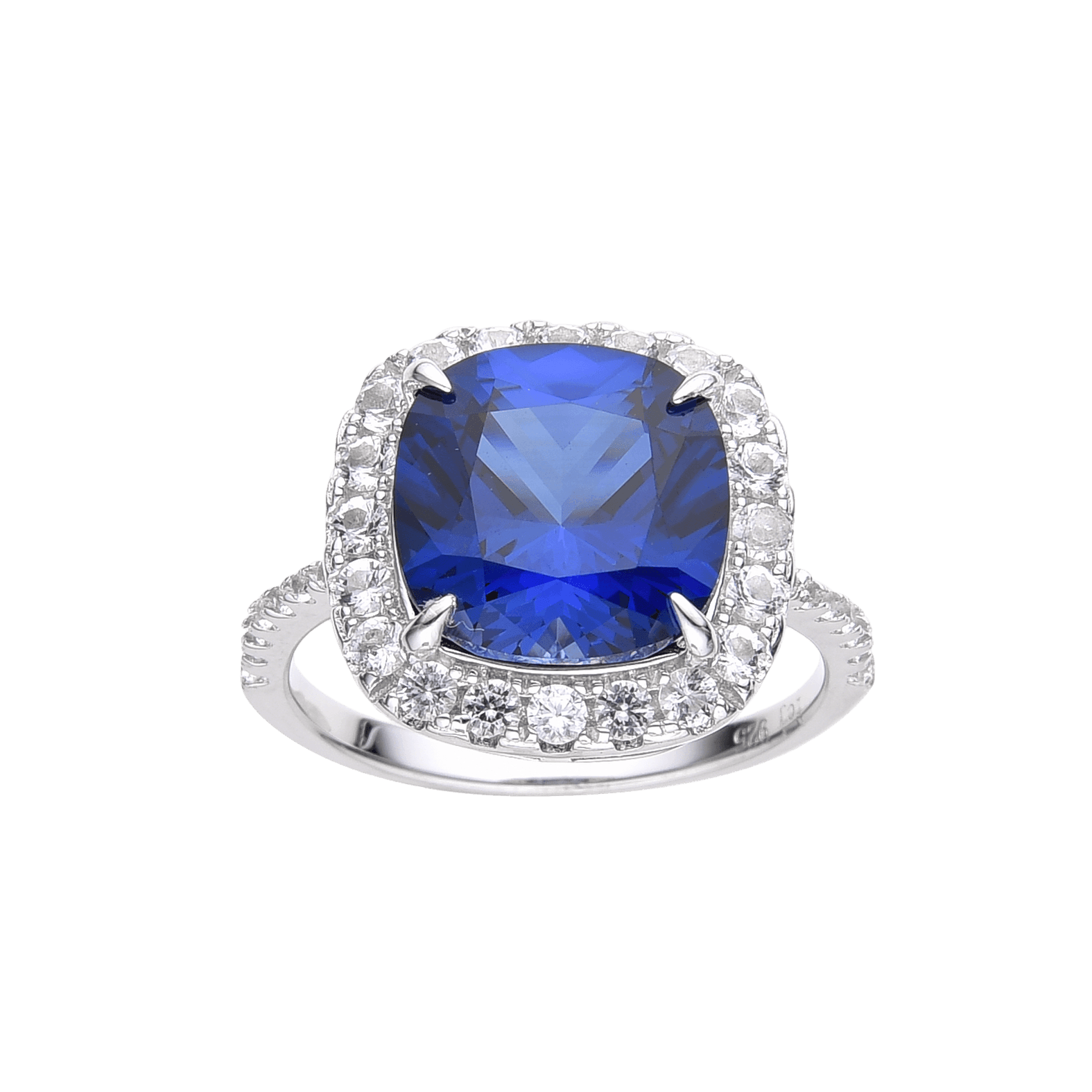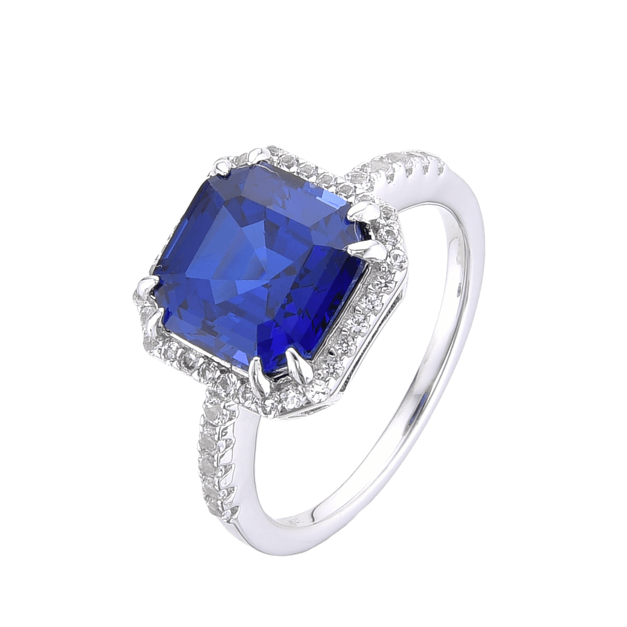 Ceylon Sapphire Asscher Cut Three Stone Ring