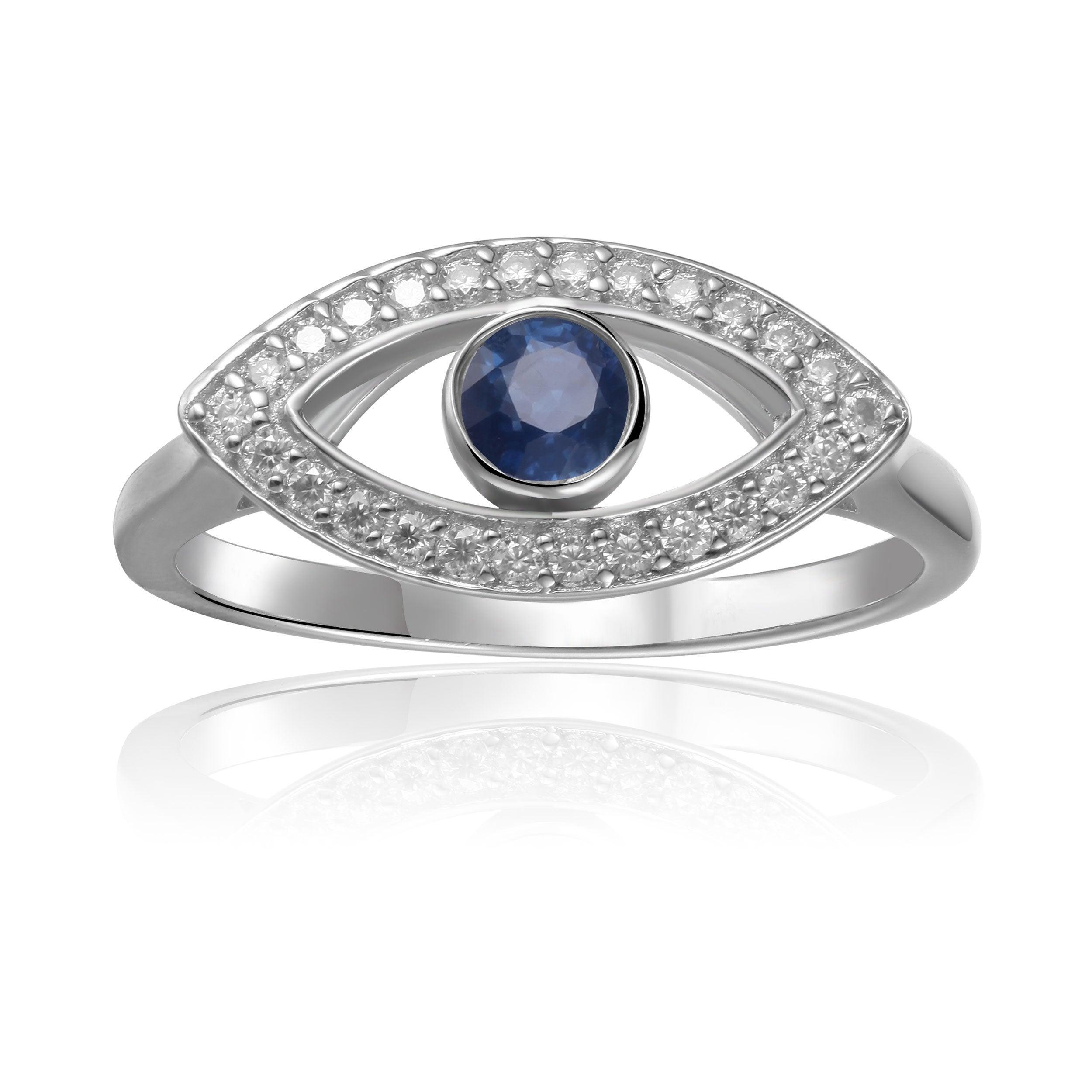 Natural Blue Sapphire and Lab Diamond Halo Ring