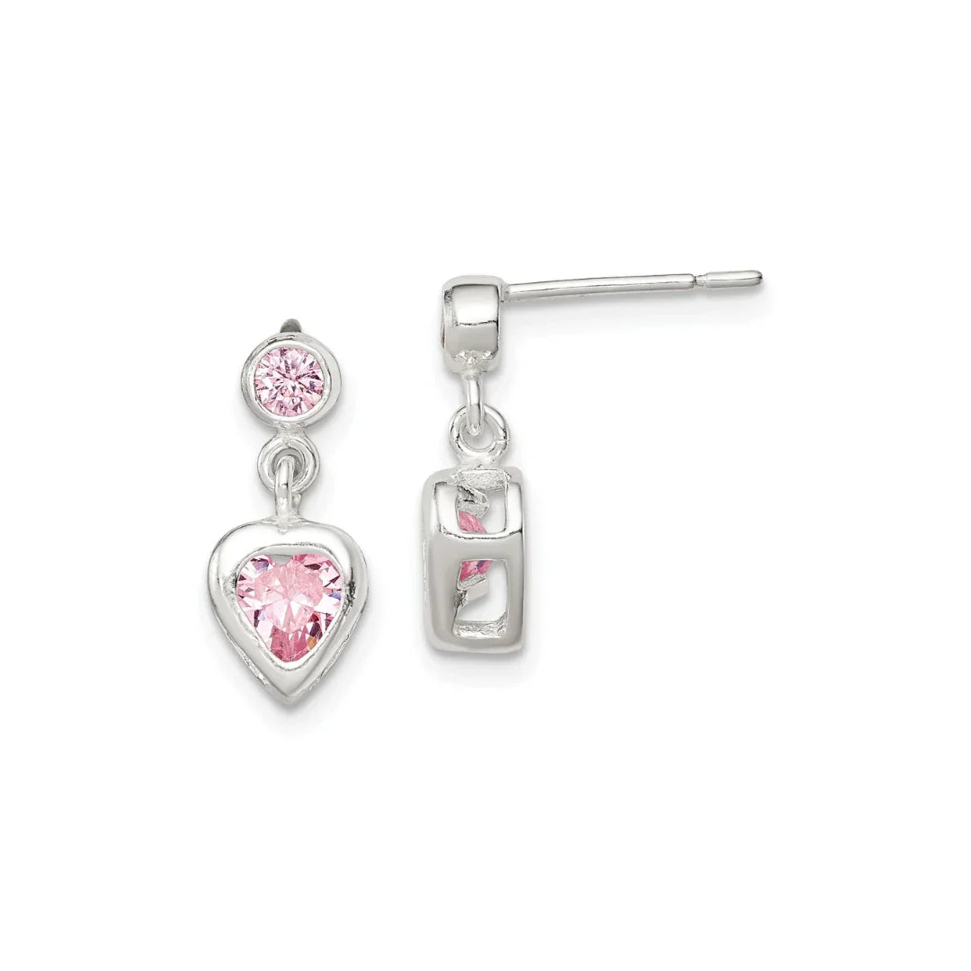 Pink Natural Rose Quartz Sterling Silver Heart Earrings