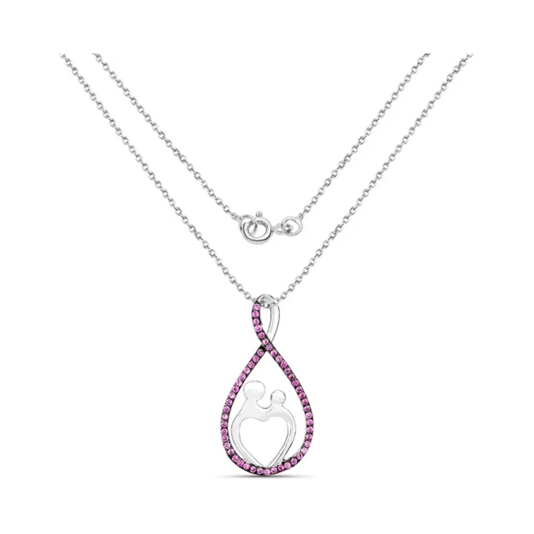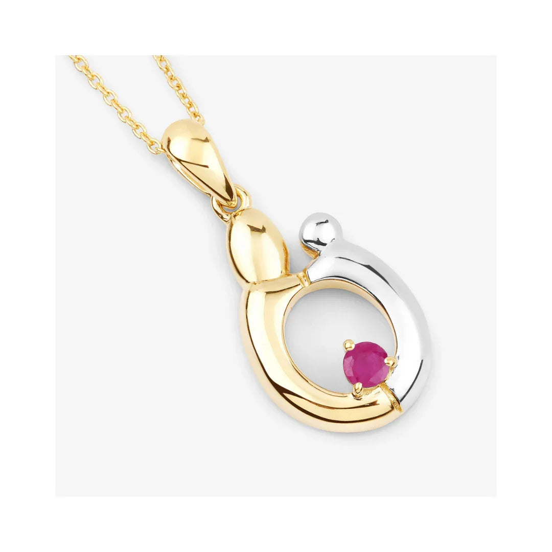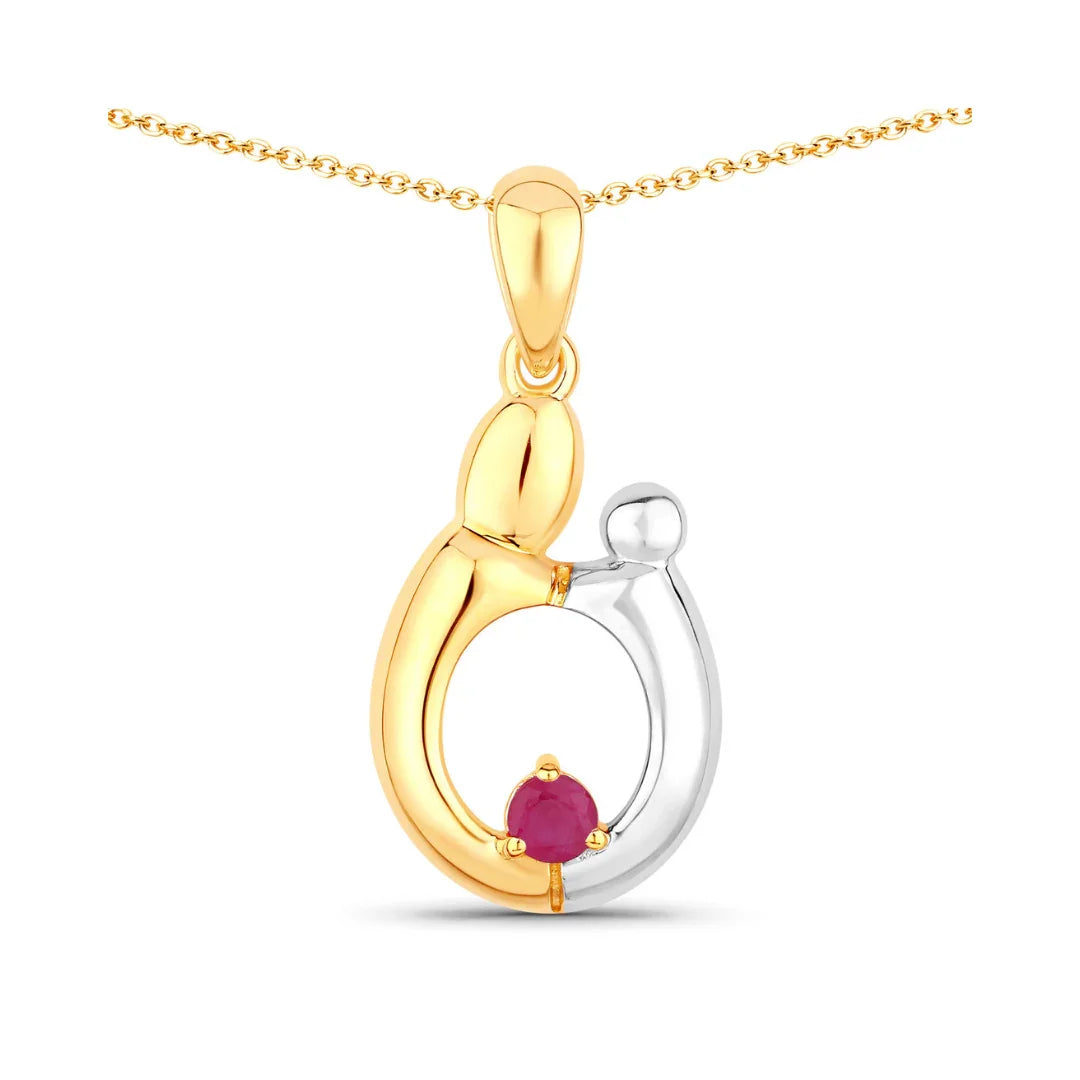 Genuine Ruby Mom Pendant Necklace Sterling Silver