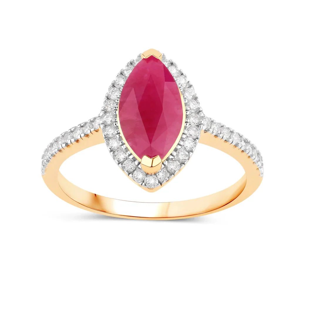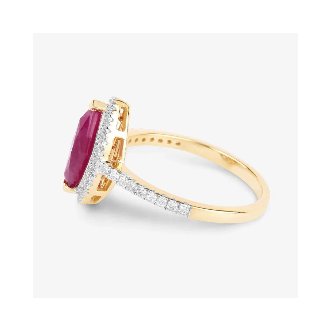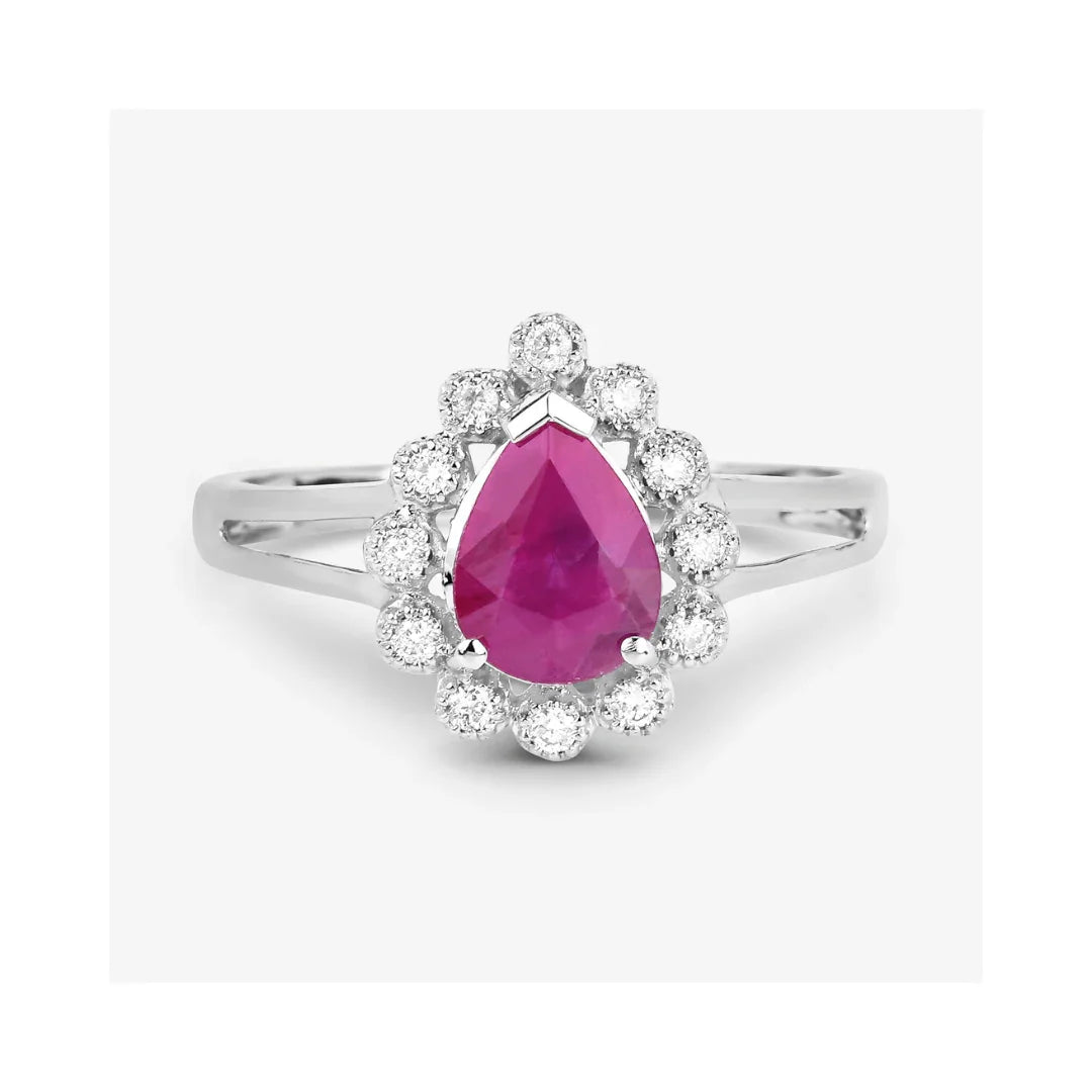 Anillo con forma de lágrima de rubí cultivado en laboratorio
