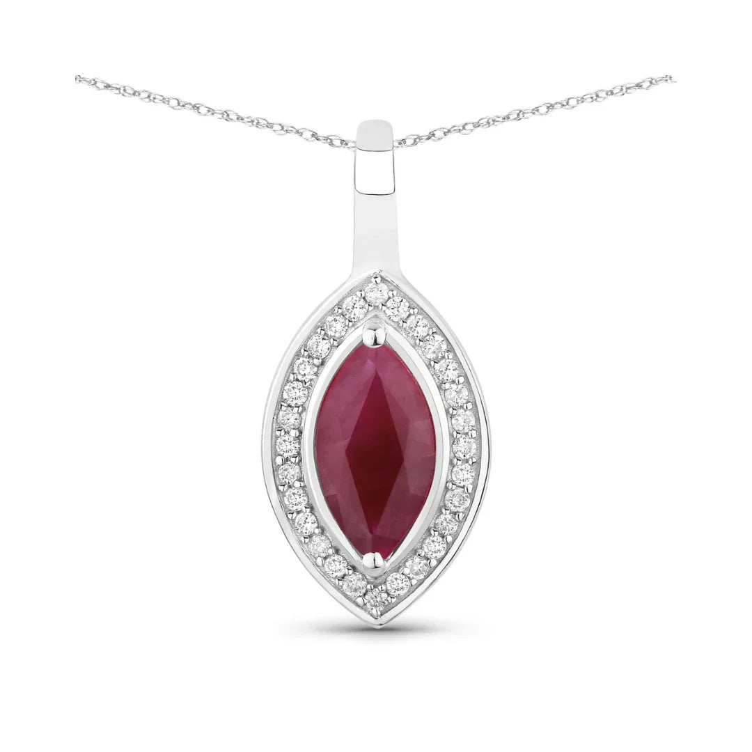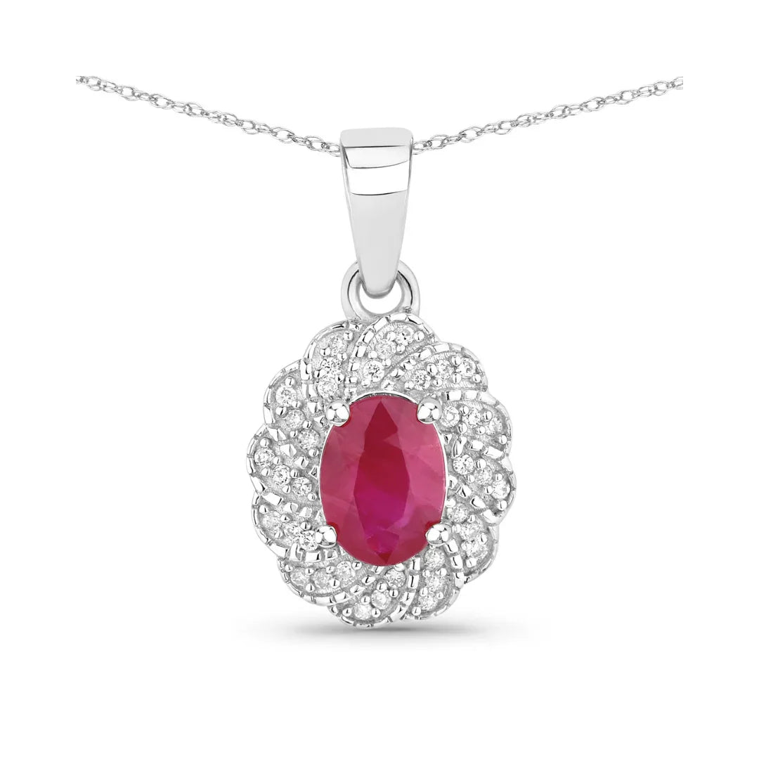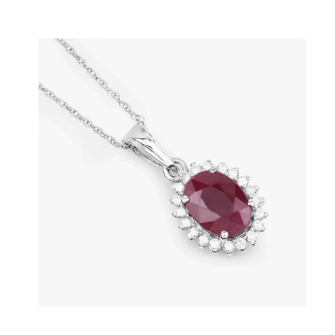 Collar con colgante de rubí auténtico de talla redonda pequeña y zafiro blanco