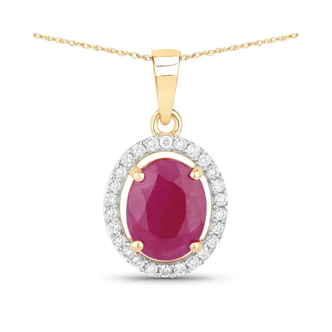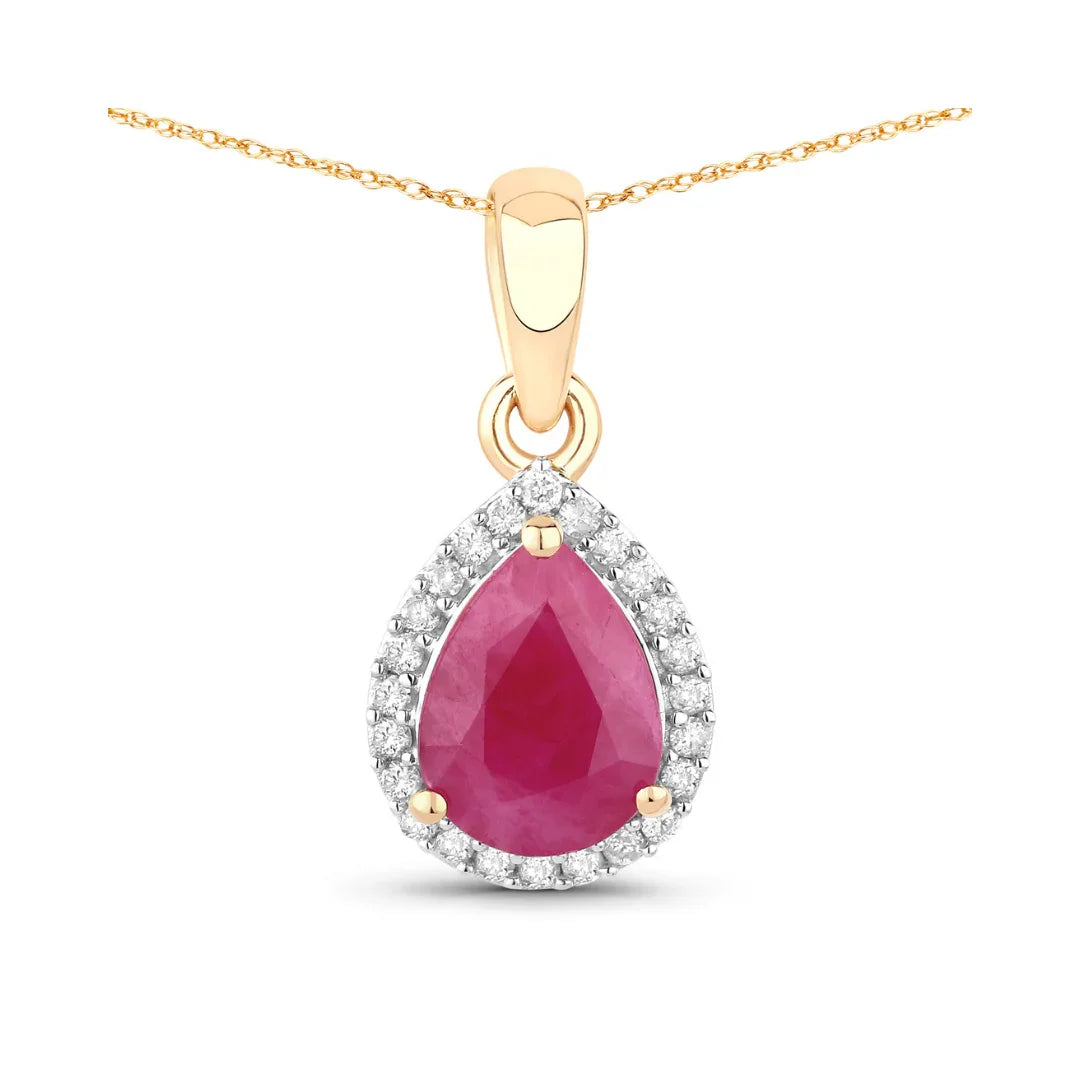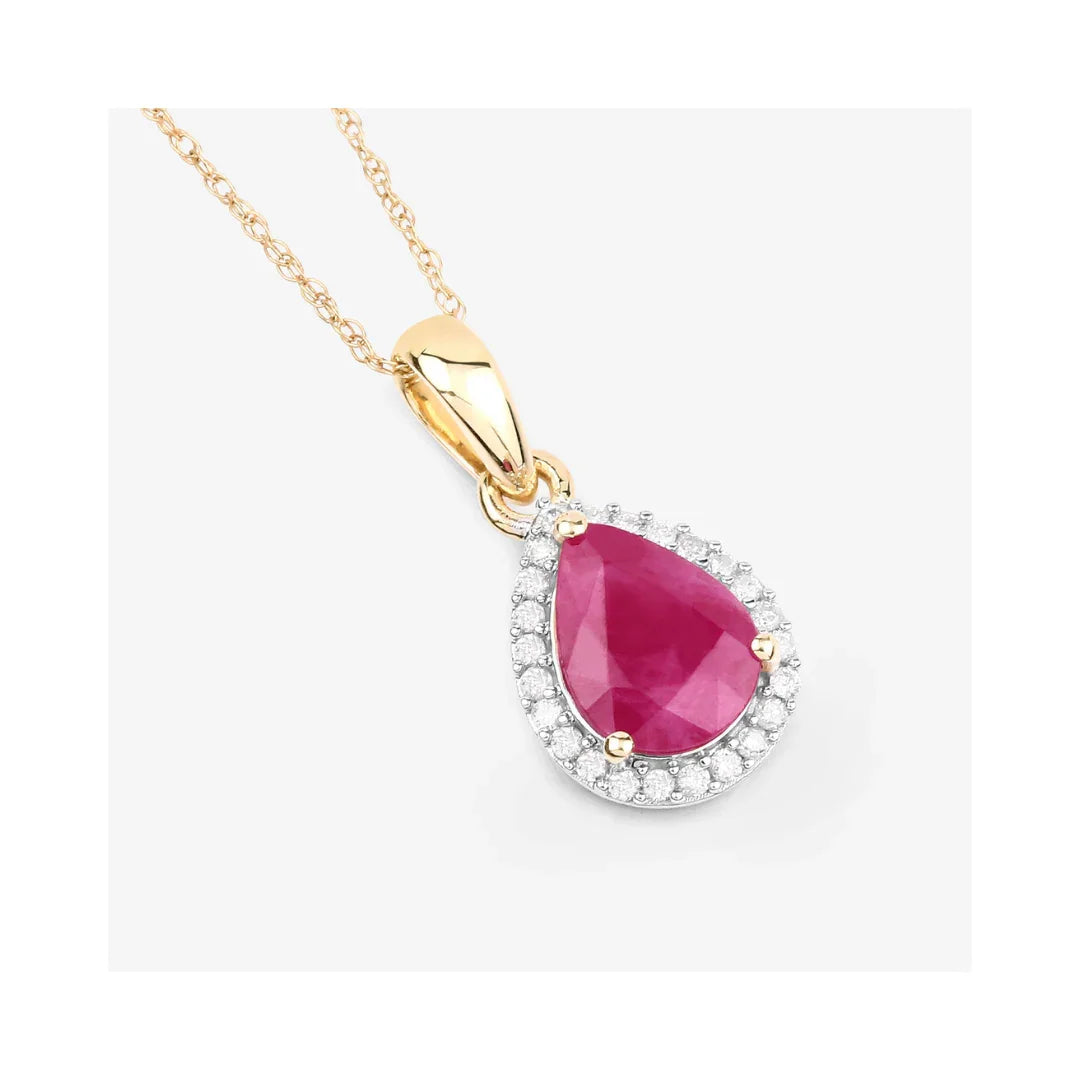 Collar con colgante de rubí auténtico de talla redonda pequeña y zafiro blanco