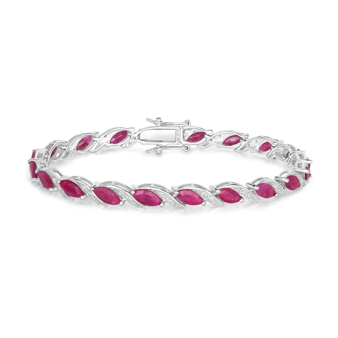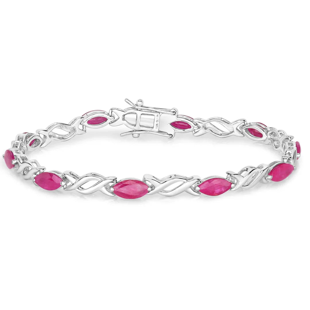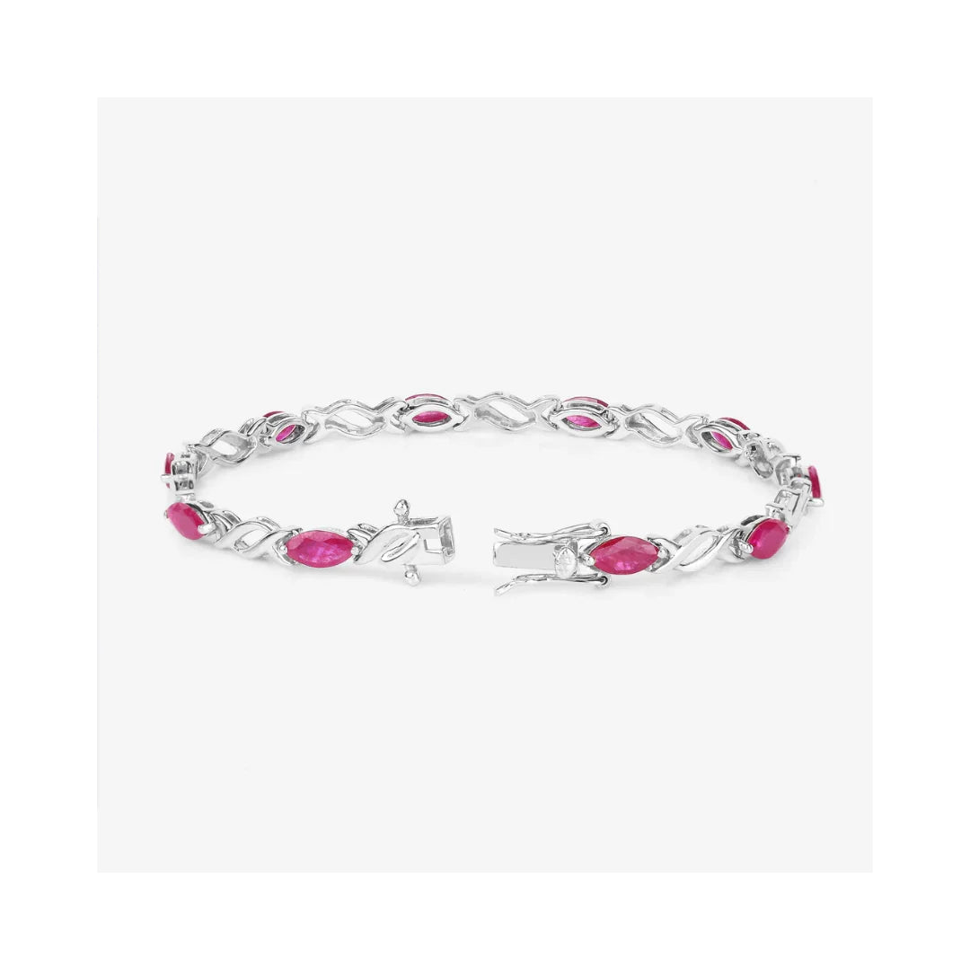 Genuine Red Ruby July Birthstone Silver Bracelet