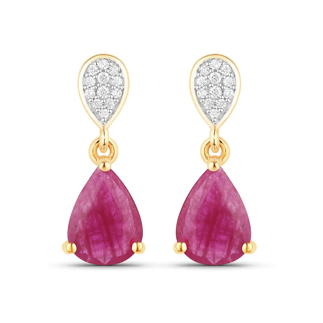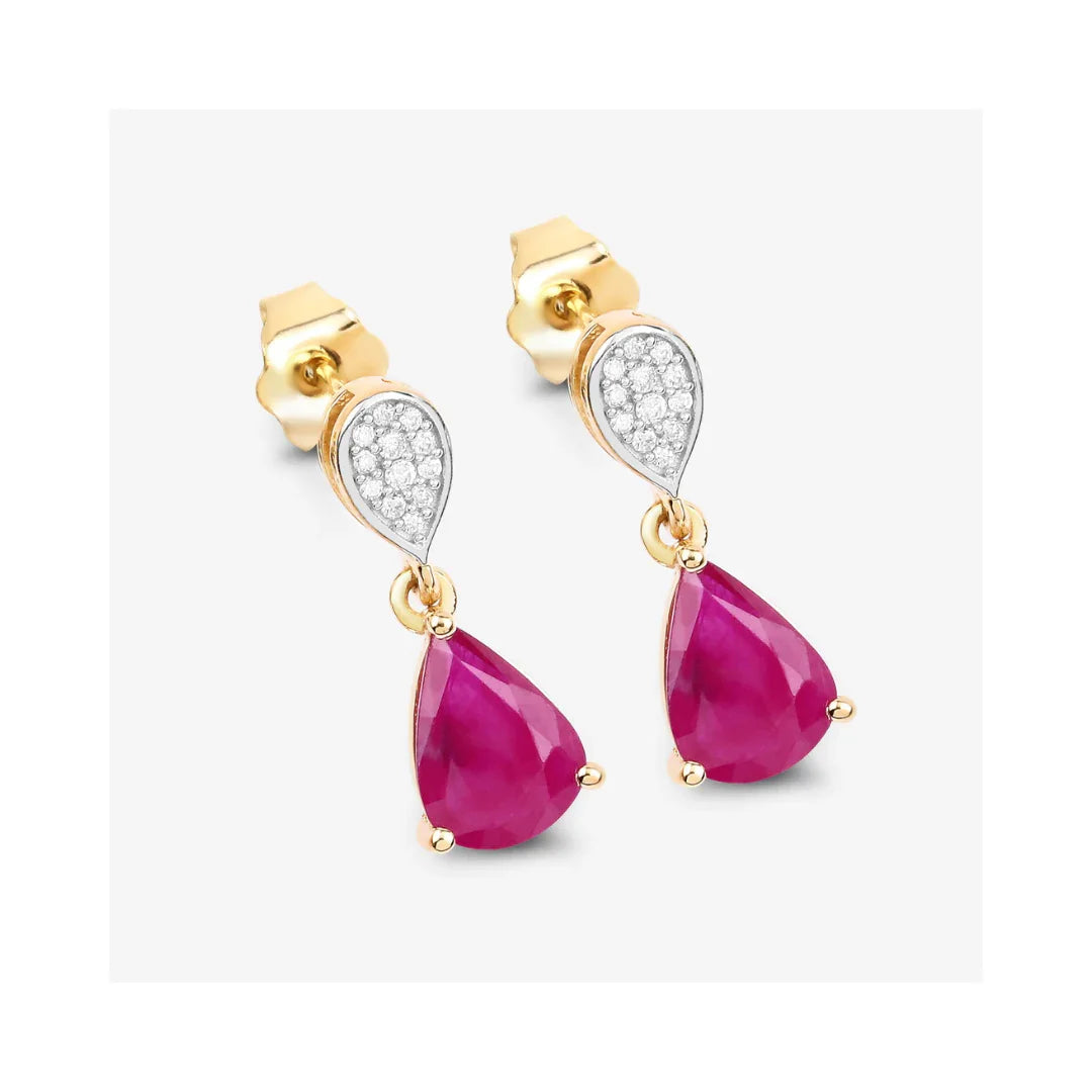 Pendientes colgantes redondos de rubí cultivado en laboratorio