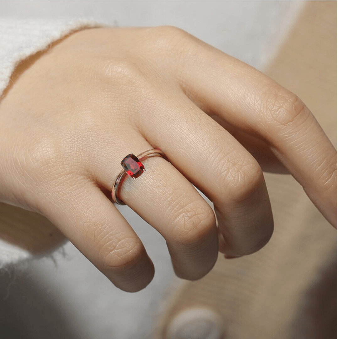 Este anillo solitario de granate natural de 1,00 ct con corte en forma de cojín está engastado en una banda de plata esterlina bañada en oro rosa de 2,20 g. Esta pieza de joyería celebra un estilo contemporáneo, con el elegante corte en forma de cojín brillando gracias al corte experto. Este anillo minimalista será un hermoso regalo para su ser querido.