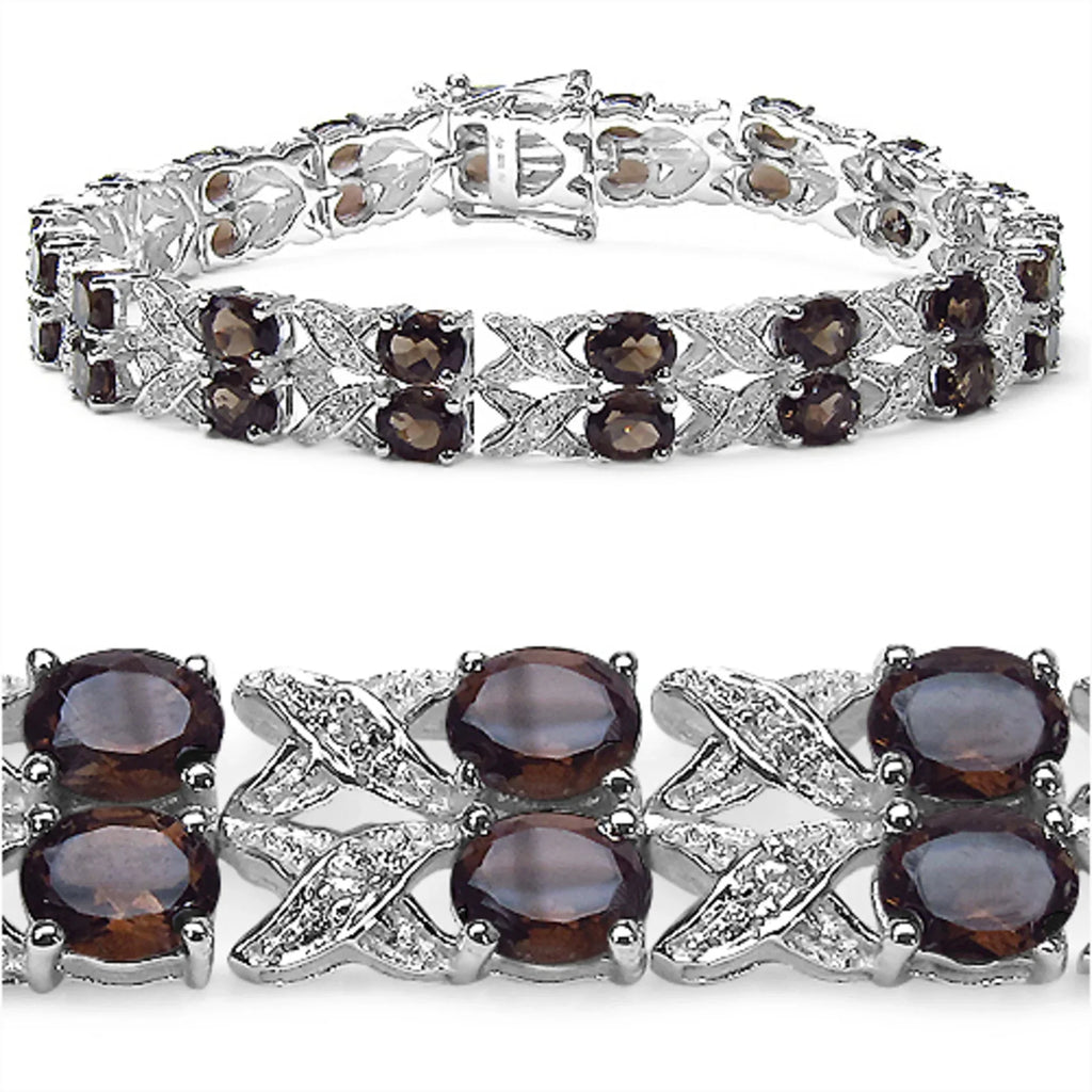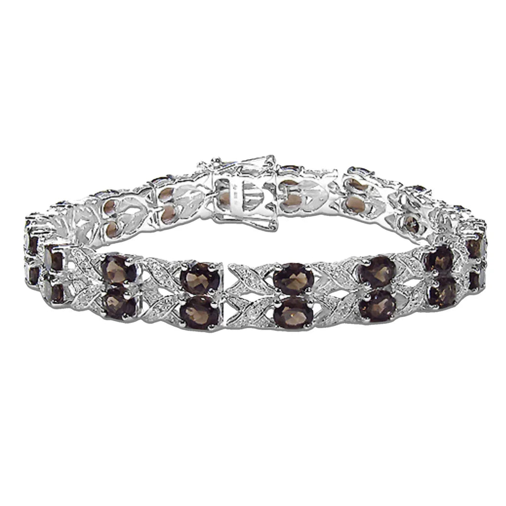 Genuine Smoky Quartz & White Topaz Crossover Bracelet