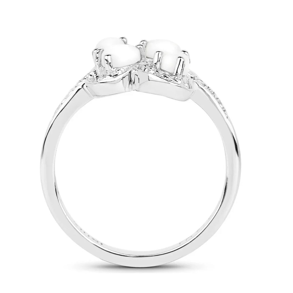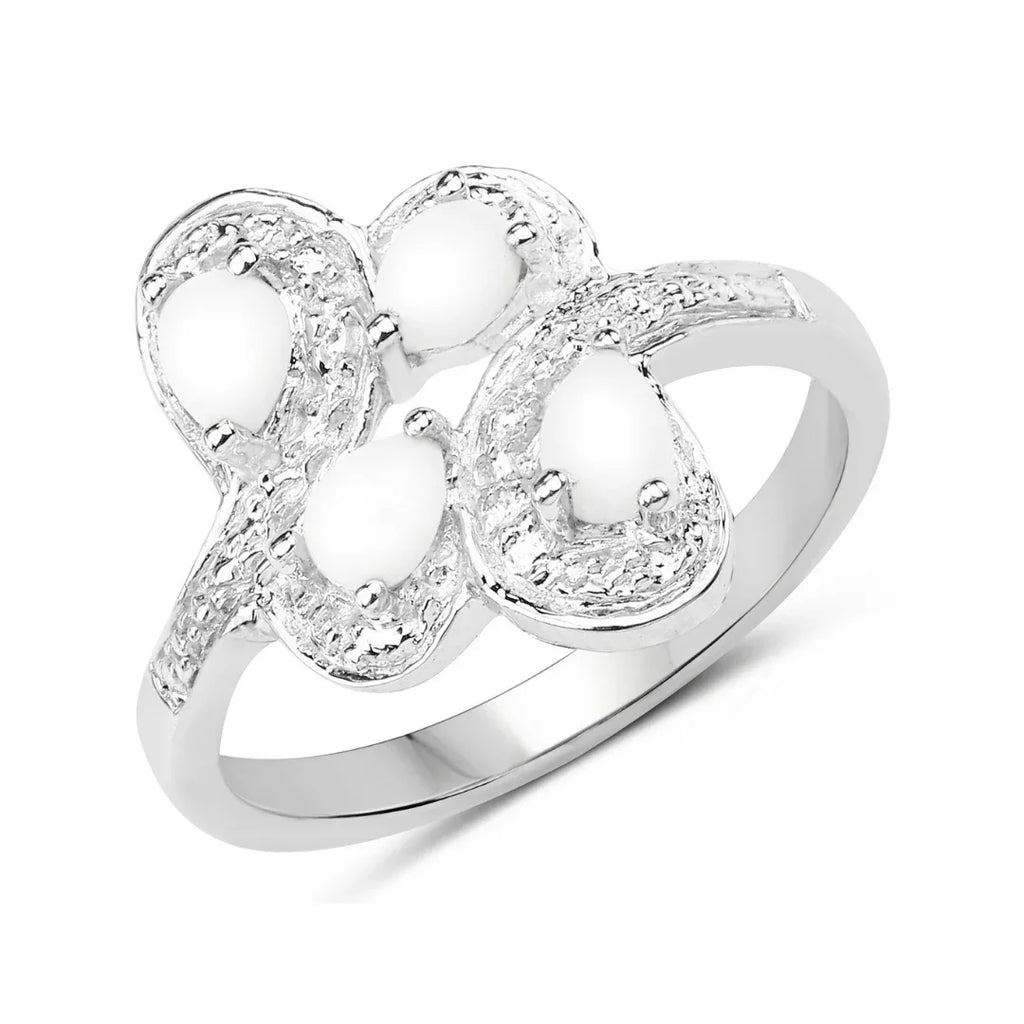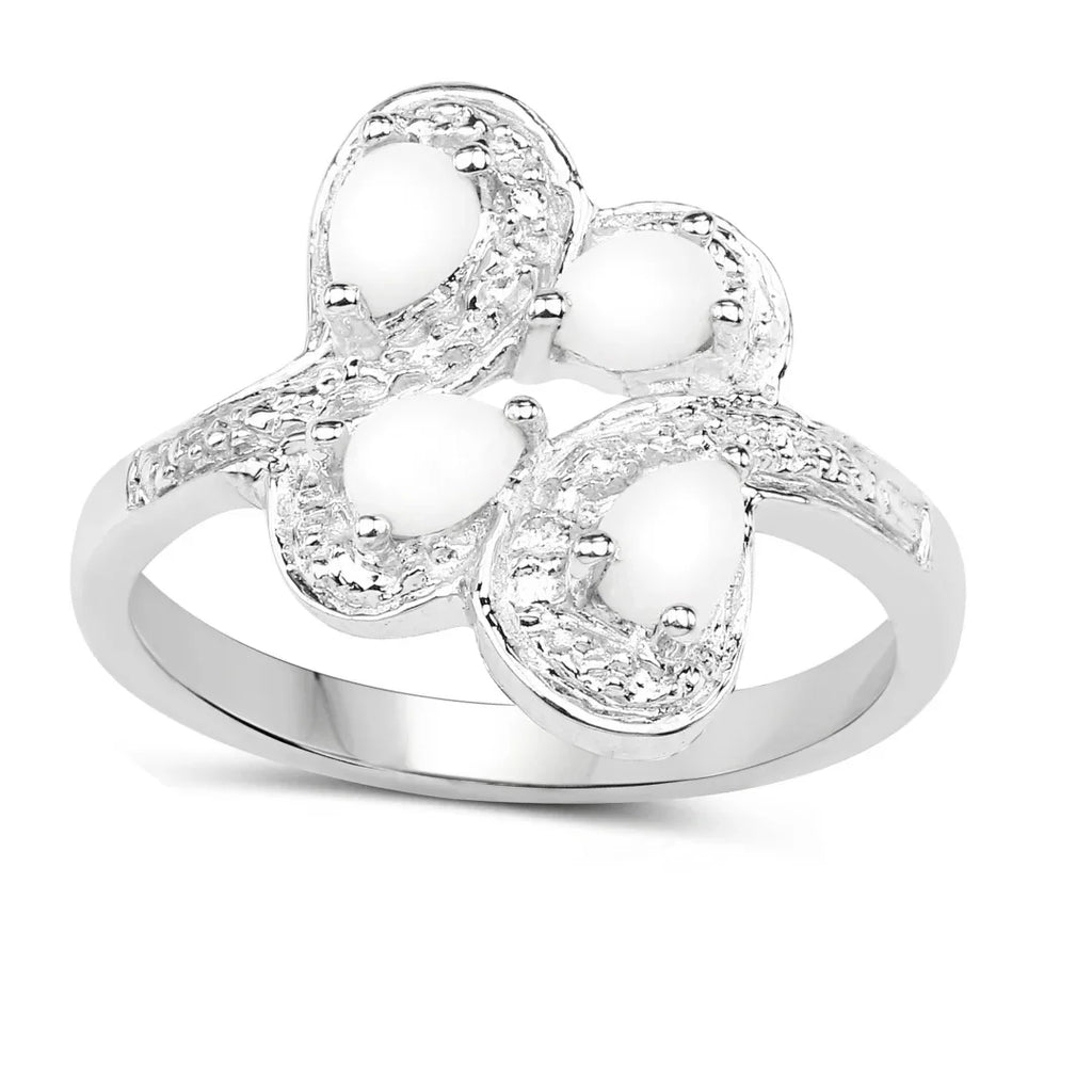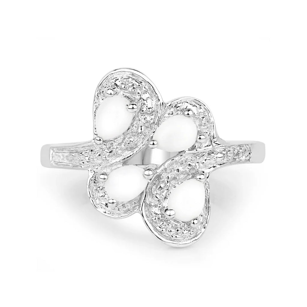 Este anillo floral de ópalo añade un toque de elegancia a tu colección de joyas. Elaborado en plata de ley 925 de alta calidad y acabado con baño de rodio, este anillo floral presenta cuatro piedras preciosas de ópalo naturales en forma de pera. Cada ópalo está bellamente engastado en puntas, formando un delicado diseño floral que brilla con el juego de colores característico del ópalo. Con un peso total de la piedra preciosa de 0,60 quilates, este anillo es una pieza atemporal que combina la elegancia con la belleza inspirada en la naturaleza, lo que lo convierte en una incorporación destacada a cualquier colección de joyería de moda.