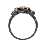 Cette bague cocktail exotique en améthyste est ornée de pierres précieuses ovales et en forme de poire, avec un magnifique accent de serpent enroulé autour des bords de la bague. Les couleurs vert et violet mettent en valeur le design unique et fabuleux.