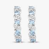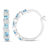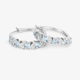 Sterling Silver Swiss blue topaz and white topaz hoop earrings for women