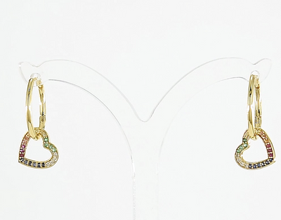 Multi Gemstone Heart Hoop Earrings in Gold Vermeil