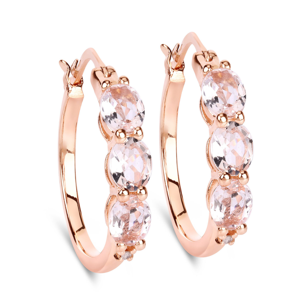 Add a touch of romance to your jewelry collection with these Morganite and Diamond Earrings. Crafted in 925 sterling silver with an 18K rose gold-plated finish, these Pink gemstone hoop earrings feature six oval-cut natural morganite stones (1.62 ctw), prong-set for a soft, radiant glow, and have a gross weight of 4.13 grams. A delicate white diamond accent (0.01 ctw) enhances the warm pink tones, making these morganite diamond earrings a stunning choice for everyday elegance and special occasions. Designed with a secure hoop closure, these rose gold-plated morganite earrings offer a comfortable fit. Explore our full collection for more styles.