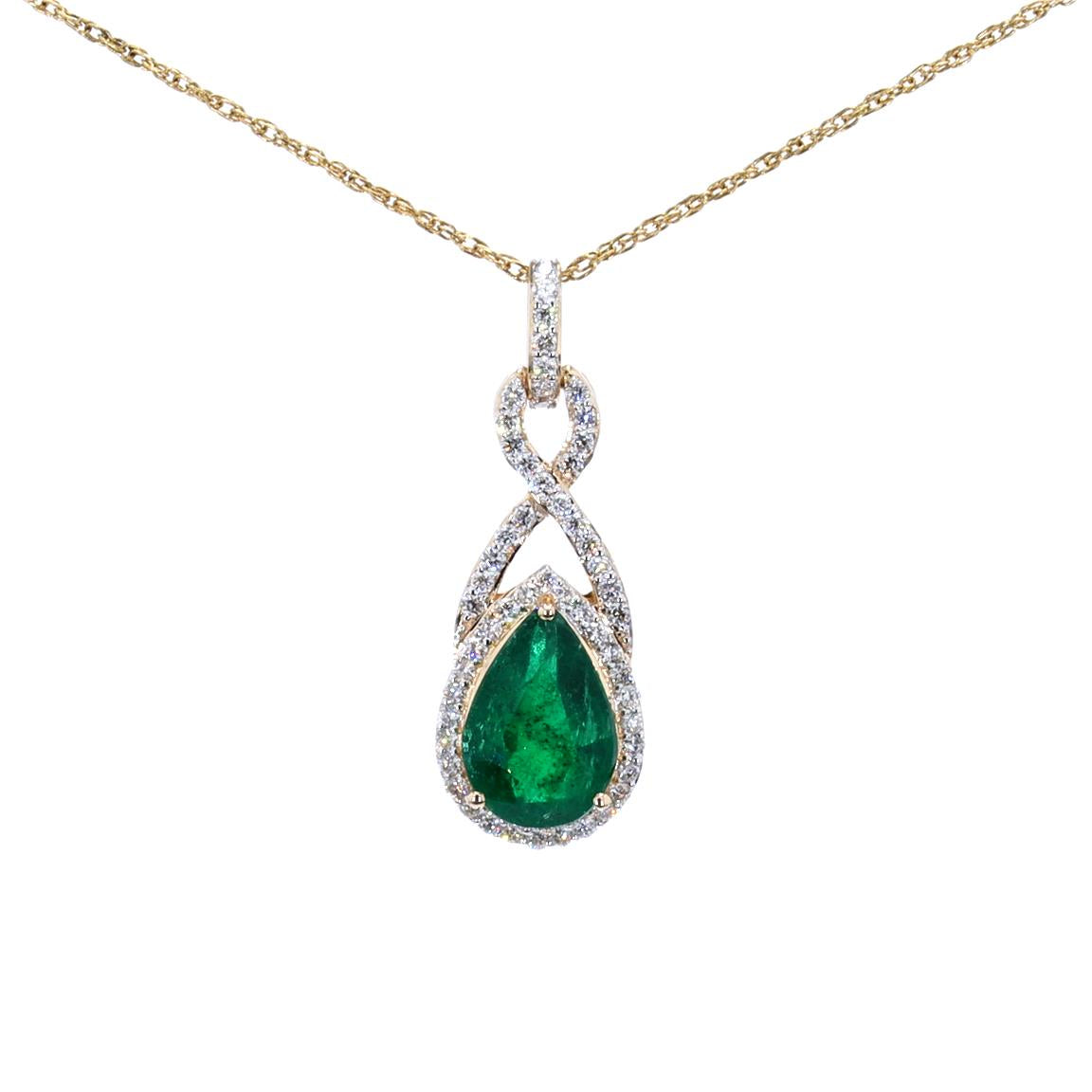 Genuine Zambian Emerald and White Diamond 14K Gold Crossover Pendant