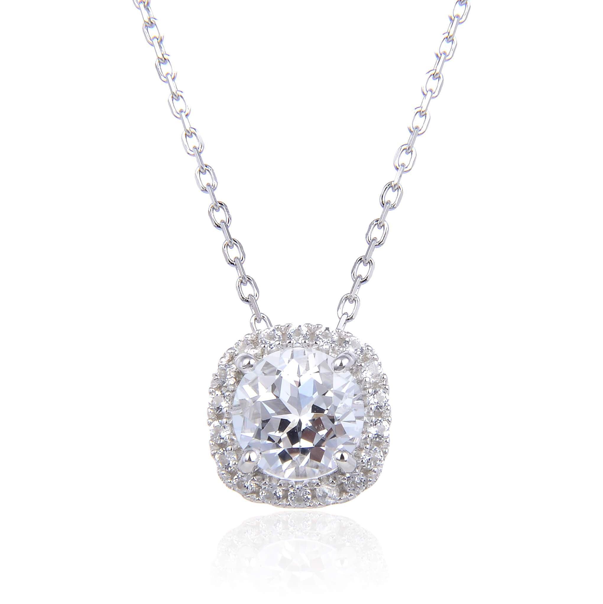 Fine Color Jewels Shine Collection | White Topaz Cushion cut Pendant Necklace for Women | (25 Sterling Silver Pendant Necklace | Beautiful Gift for Her