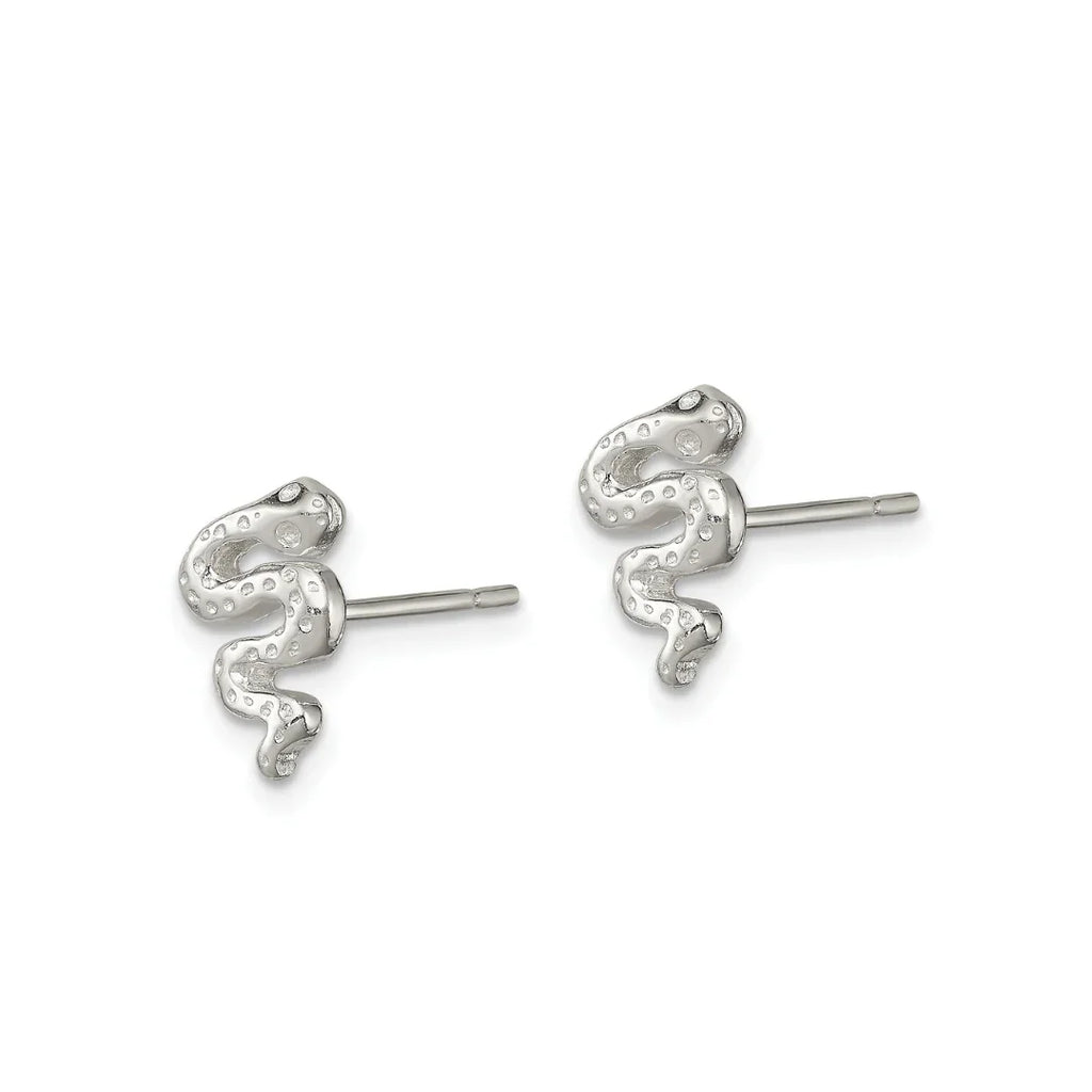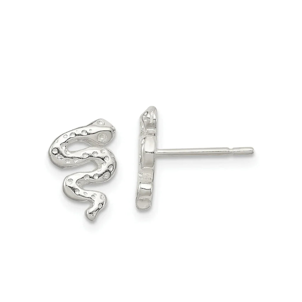 Silver Snake Earrings With Post Back And Polished Sterling Silver Finish