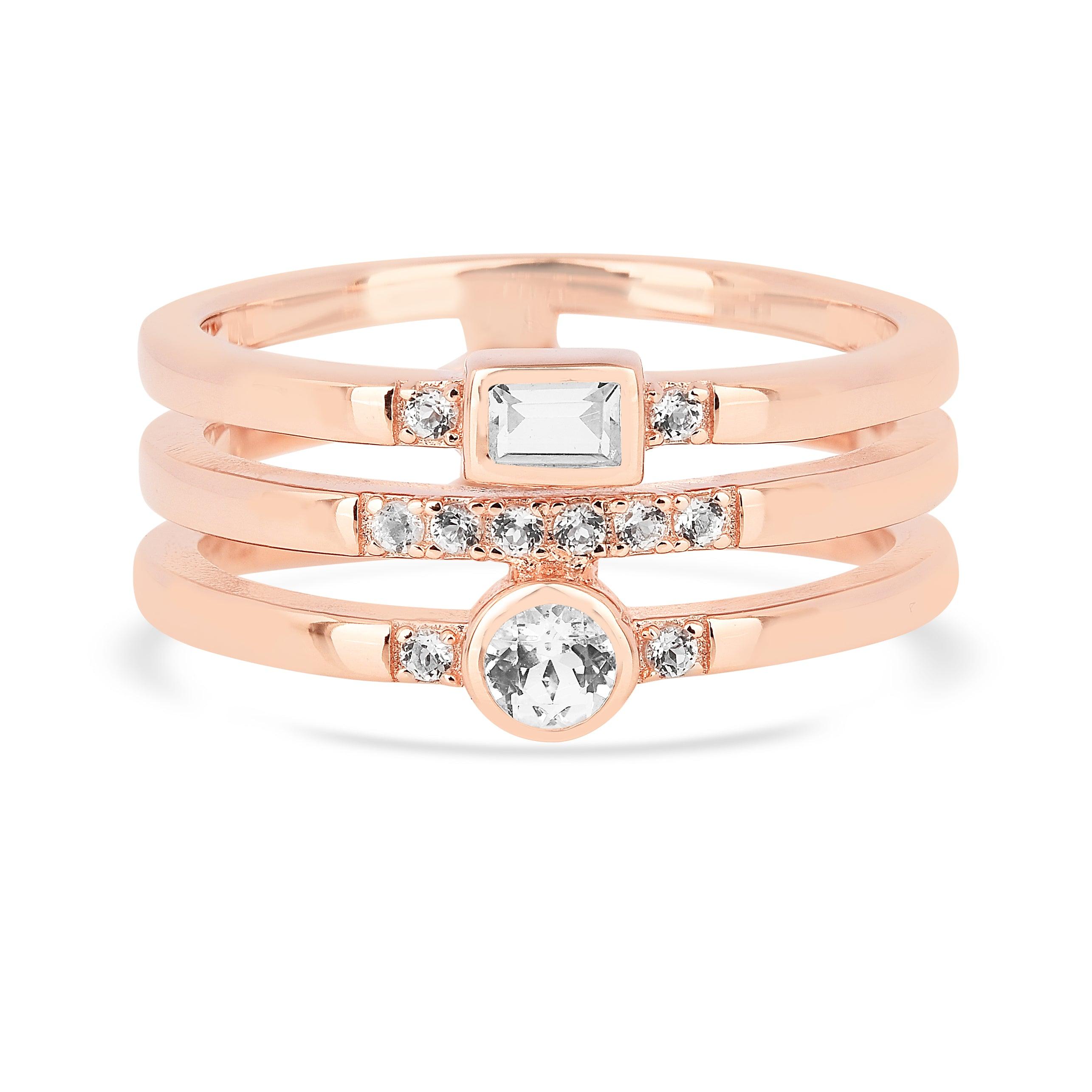 White Sapphire Rose Gold Three Band Fashion Ring