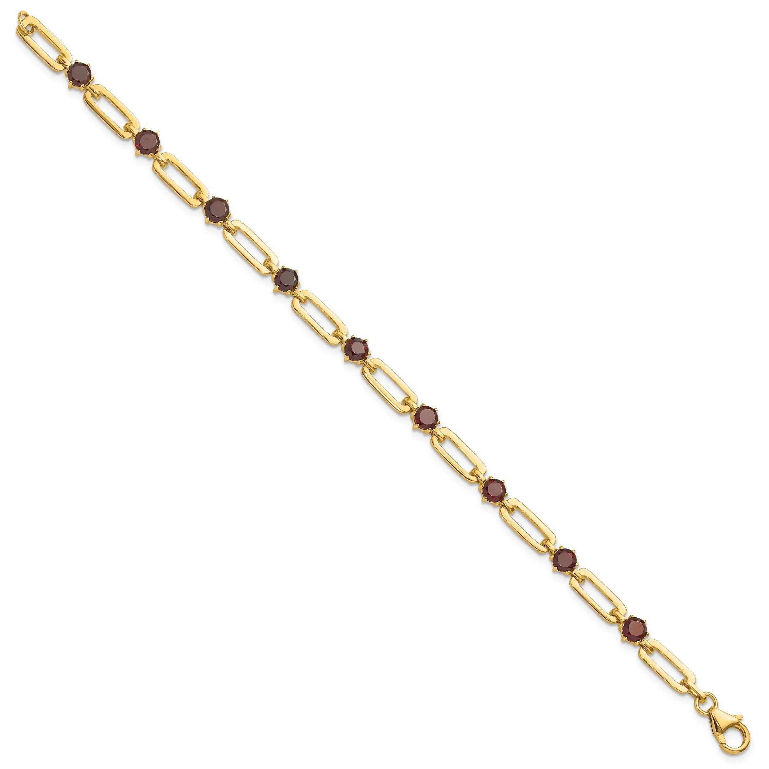 Sterling Silver and Garnet Bracelet – Gold Plated Paperclip Chain